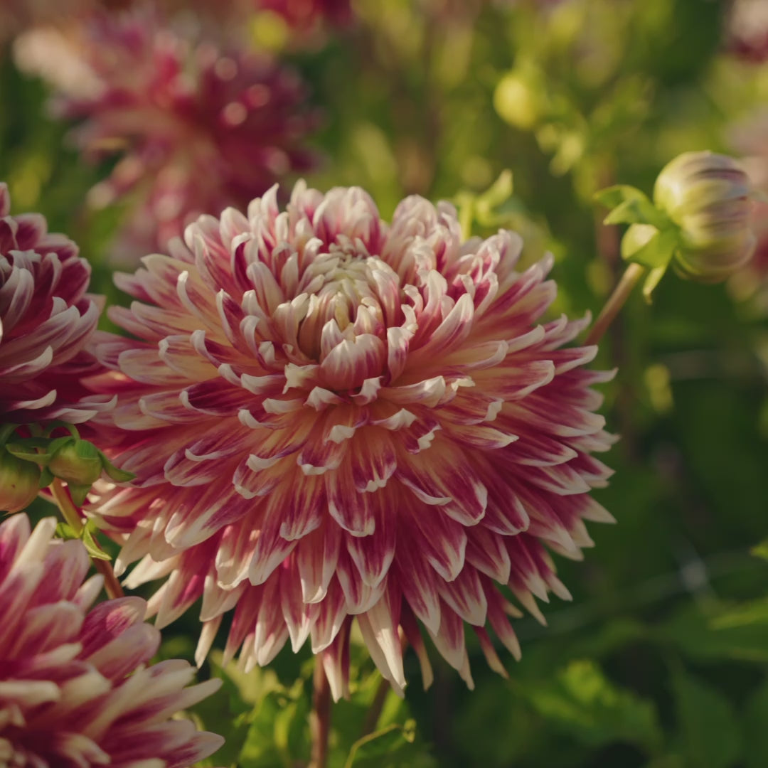 Dekorative Dahlien: Diese Dahlien sind voll und farbenfroh. Sie sind perfekt, um üppige Blumenarrangements zu schaffen.