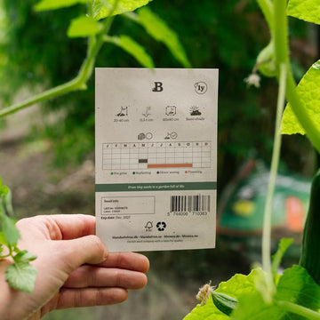 Die Anleitung enthält alles, was du wissen musst: Pflanzenhöhe, Aussaat- und Pflanzabstände sowie den optimalen Standort. Auf den Samentütchen haben wir außerdem einen kleinen Kalender integriert, der zeigt, wann du vorkeimen oder aussäen solltest.
